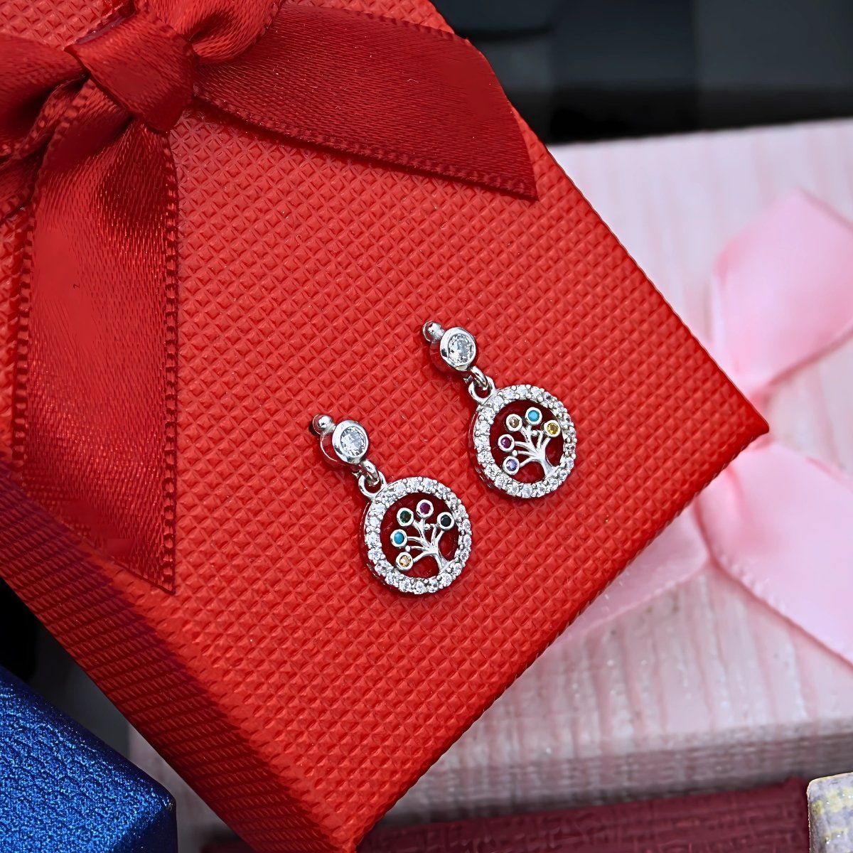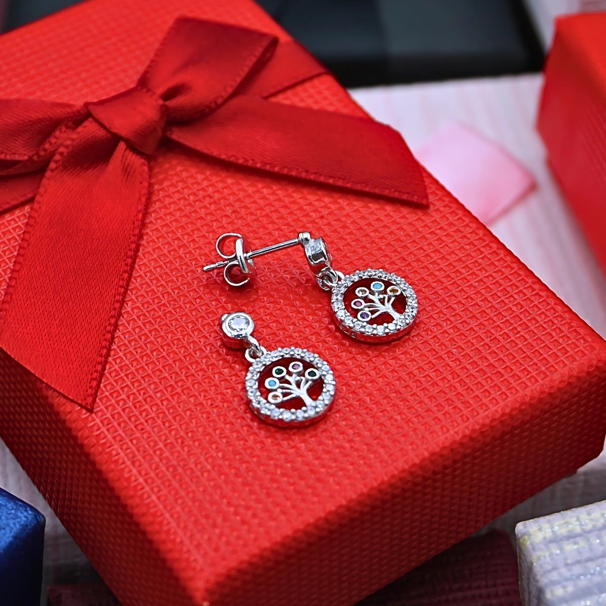 Σκουλαρίκια με Δέντρο της Ζωής “Athanasia”, με χρωματιστά ζιρκόνια, από Ασήμι 925